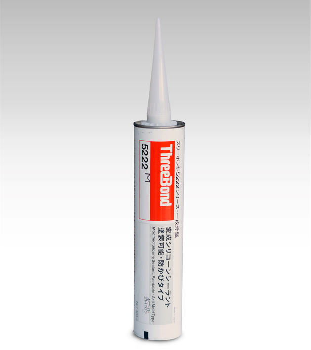 ThreeBond 5222L is a single component modified silicone sealant based on organic polymers modified by moisture curing silicone functional groups. After curing, the sealant becomes a rubber-like elastic body excelling in heat resistance and cold resistance. Since it is a paintable type of sealant, it is suitable for sealing areas of parts to be painted after the parts are assembled.